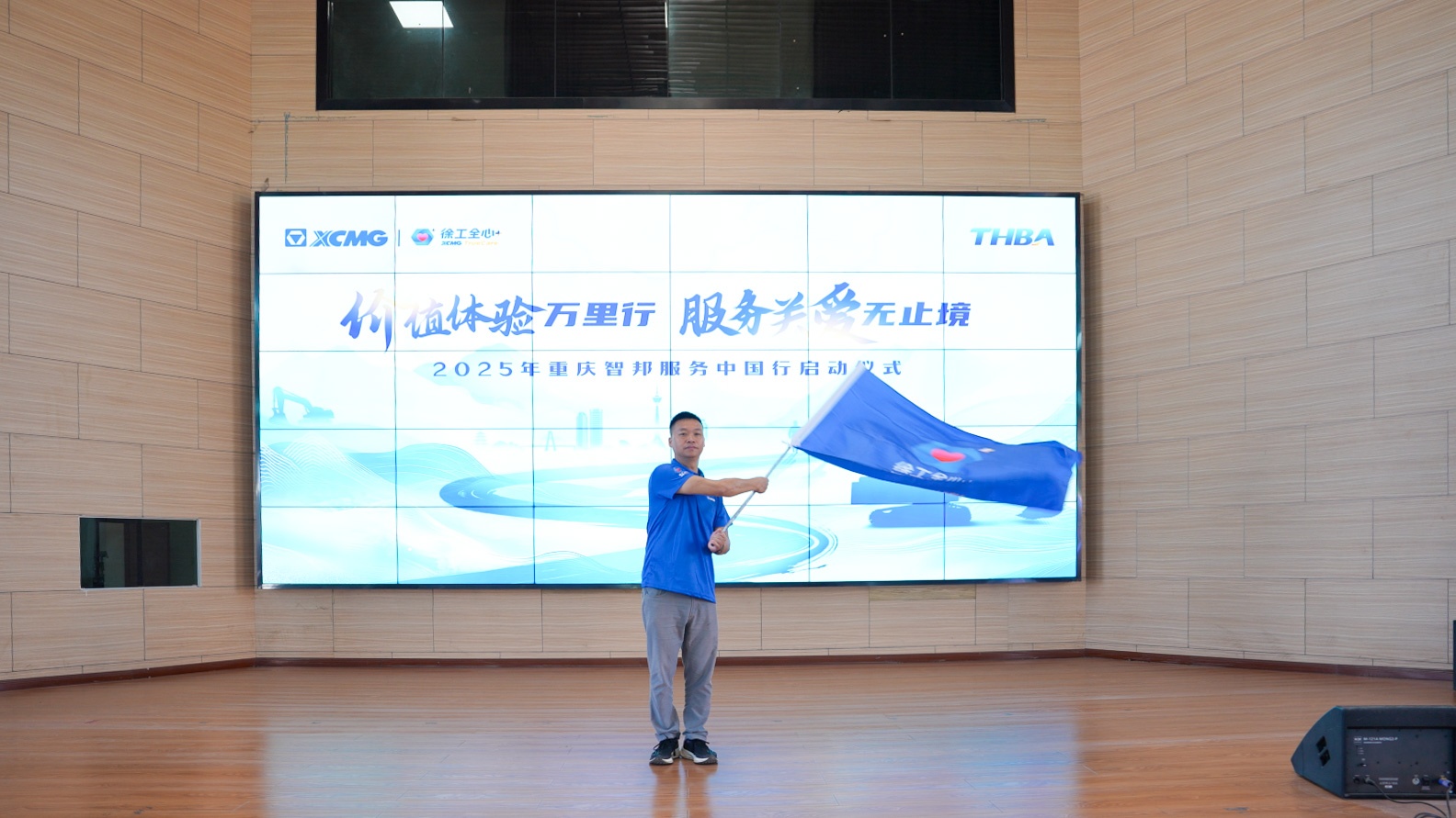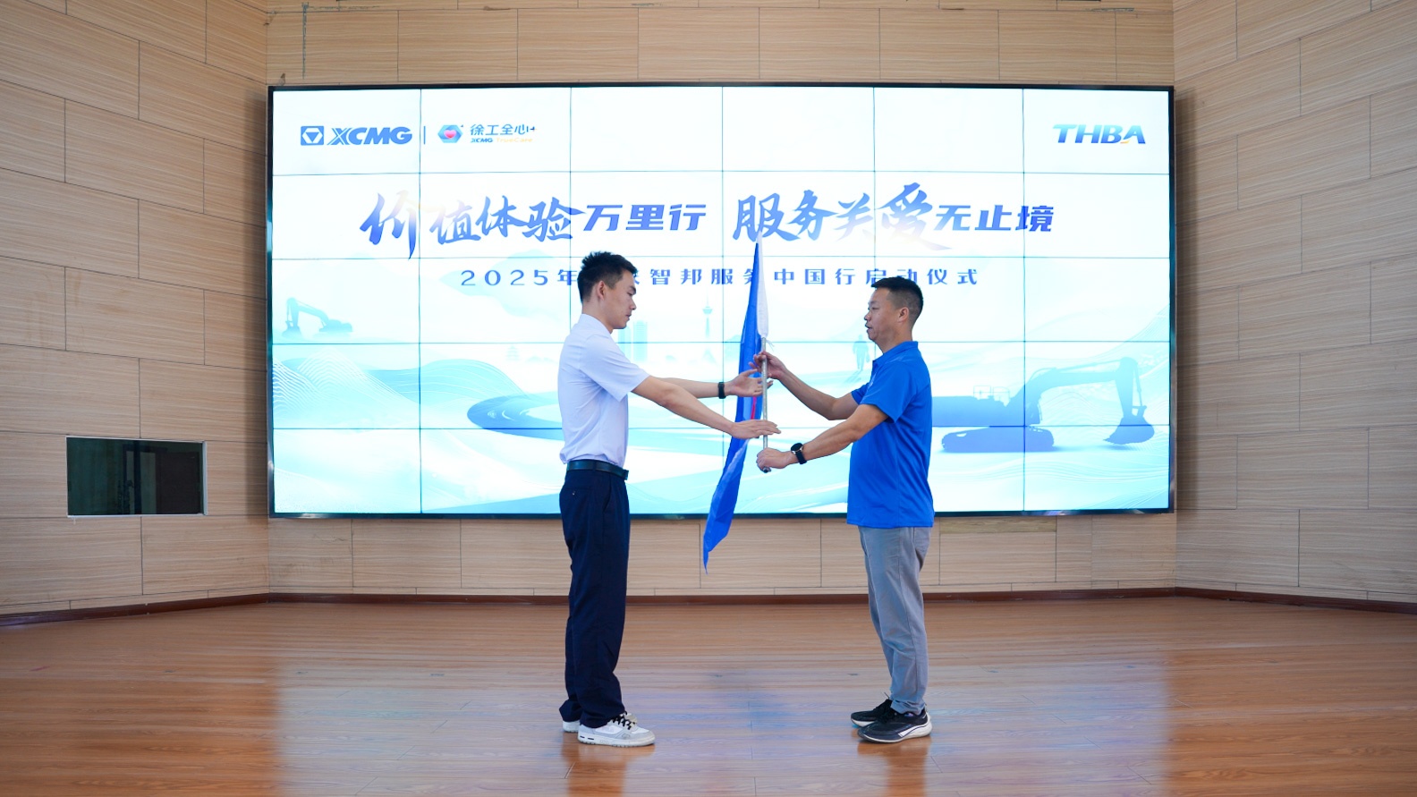 匠心致遠,奮楫篤行向未來。在激昂的樂曲聲中,服務中國行授旗儀式莊嚴舉行。徐州徐工挖掘機械有限公司駐重慶服務經理張旭將這面承載著責任與擔當的旗幟,鄭重授予重慶智邦工程機械管理有限公司服務總監張勇手中。接過旗幟的張總目光如炬,雙手緊握旗桿,也握住了萬千客戶的信任與期待。飄揚的旗幟下,是智邦人"服務至上"的堅定誓言,是"精益求精"的工匠精神,更是對"中國制造"品質承諾的永恒堅守。這一刻,榮耀與責任同在,初心與使命同行!