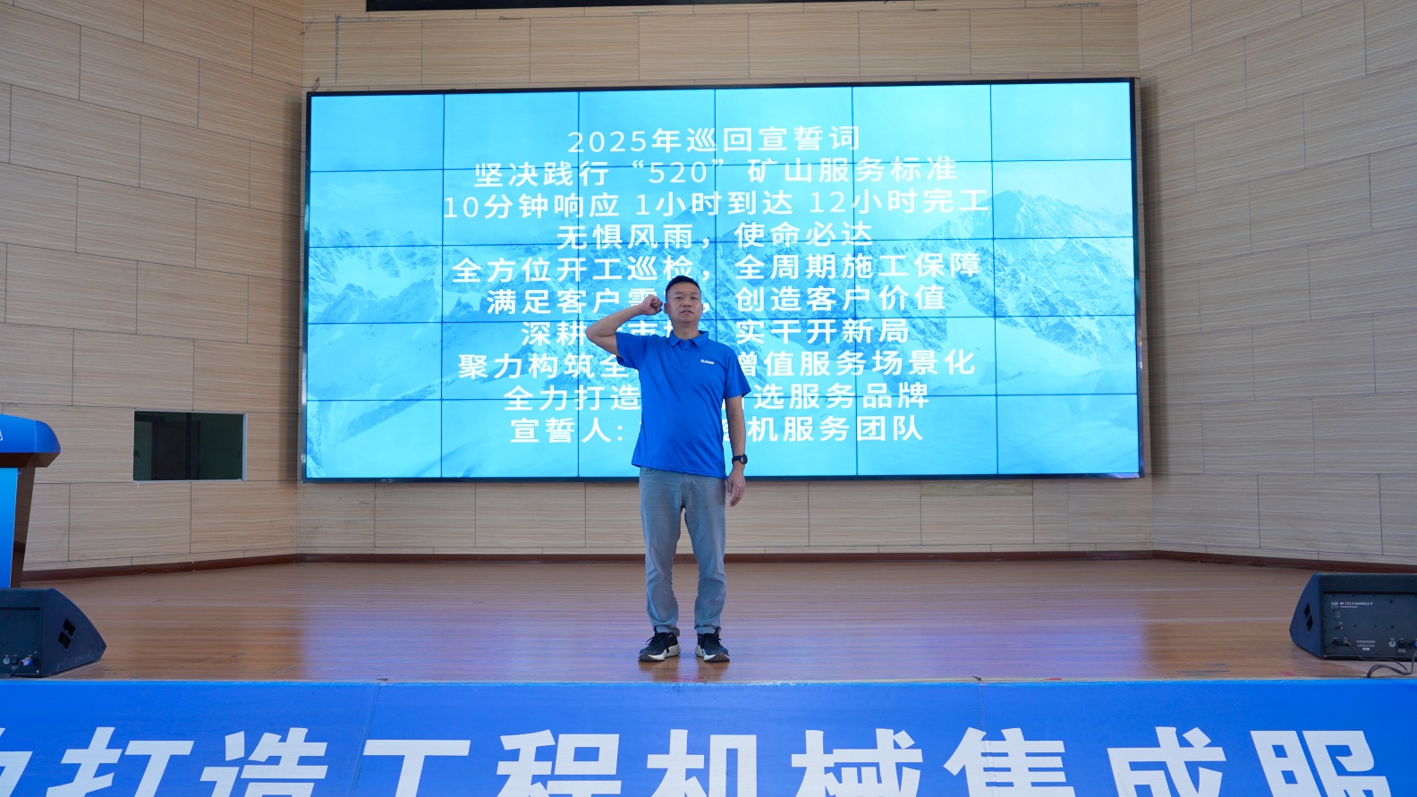 錚錚誓言聲聲入耳、字字入心。張總帶領服務團隊莊嚴宣誓:“堅決踐行“520”礦山服務標準,10分鐘響應,1小時到達,12小時完工;無懼風雨,使命必達,全方位開工巡檢,全周期施工保障,滿足客戶需求,創造客戶價值;深耕后市場,實干開新局,聚力構筑全心+,增值服務場景化,全力打造行業首選服務品牌”這一刻,堅定的眼神交匯成信念的星河,嘹亮的聲音匯聚成前進的號角。誓言既出,使命必達!智邦服務精英將駕乘服務車輛,在市井深處,在郊區鄉野,在每一個徐工挖機能到達的地方……向著初升的朝陽方向延伸,讓服務的光芒照耀更遠的地方。
